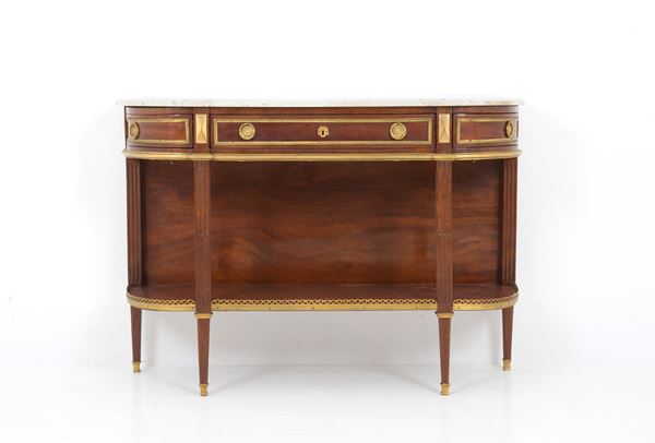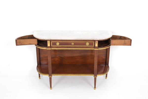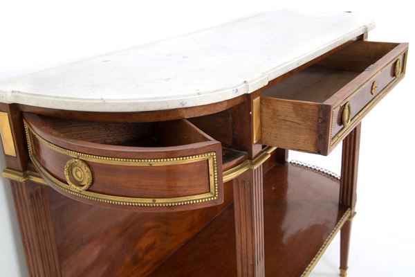 Mahogany server with gilt bronze finishes and white Carrara marble top. Napoleon III period.