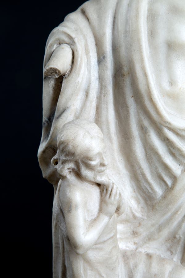 White marble sculpture depicting "SAINT JOHN THE BAPTIST". 17th century. One arm missing.