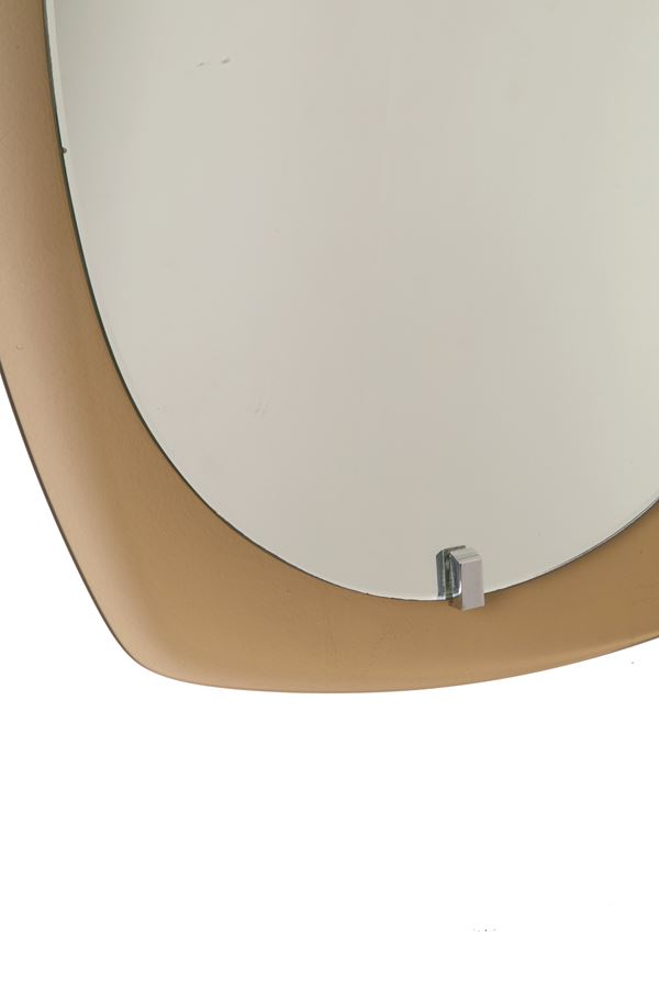 Smoked glass mirror with steel and iron supports. VECA production. 1950s. Signs of wear and tear of time.