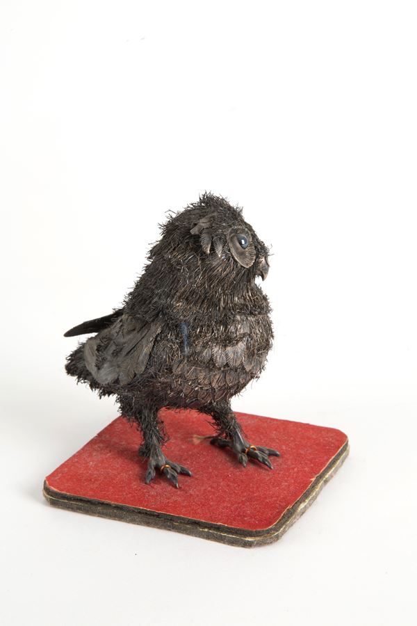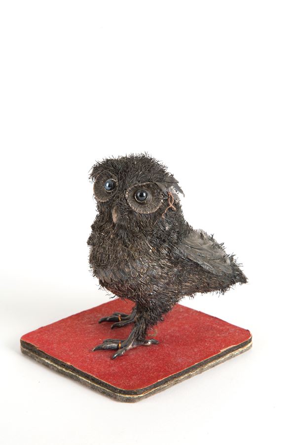 Little owl with silver filigree plumage. BUCCELLATI Manufacturing (Attr.). 20th century.