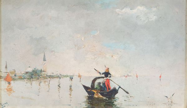 Painting "GONDOLA WITH FIGURES IN THE LAGOON"