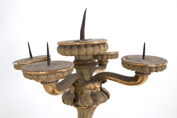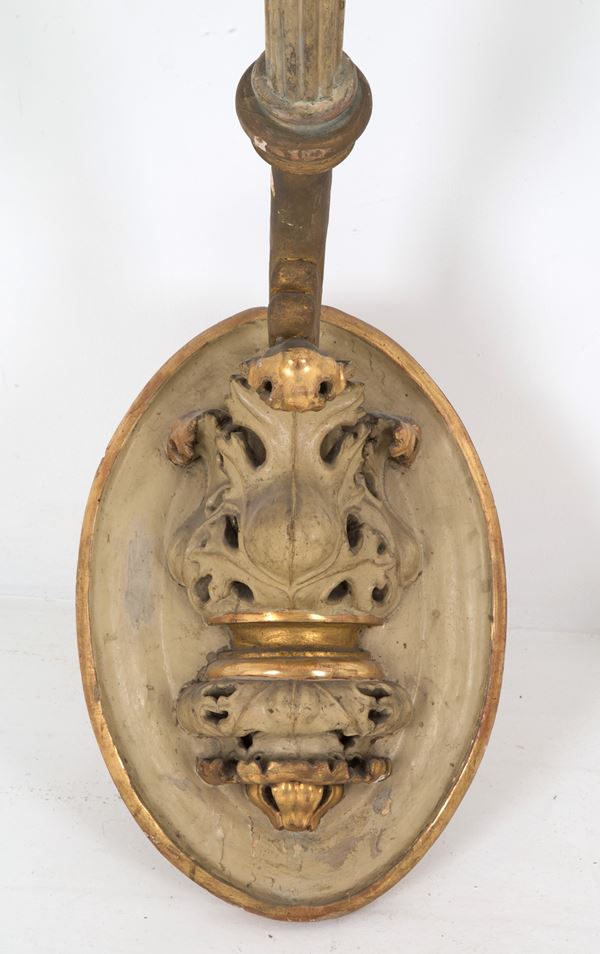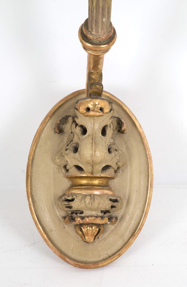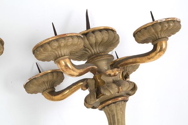 Pair of torches in lacquered and gilded wood. 17th century. Minor defects.