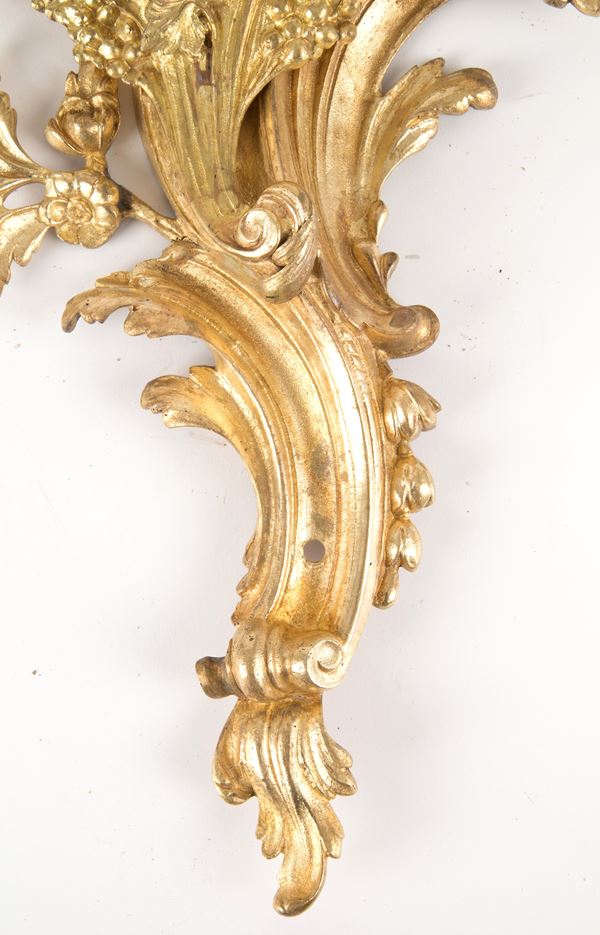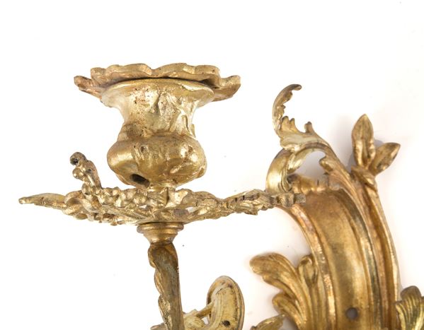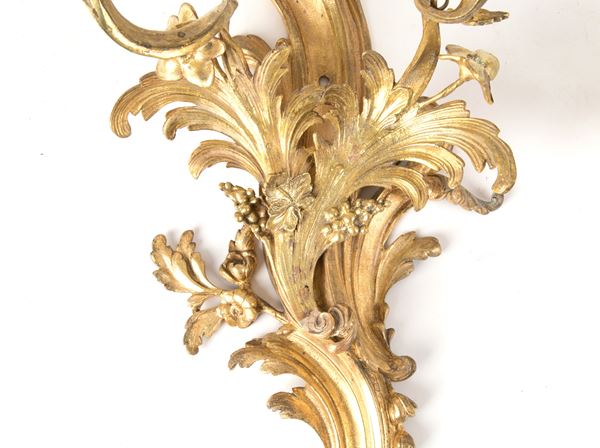 Pair of two-flame sconces in gilded bronze. Late 19th century.