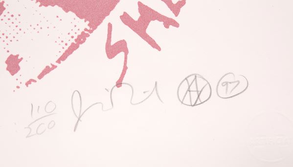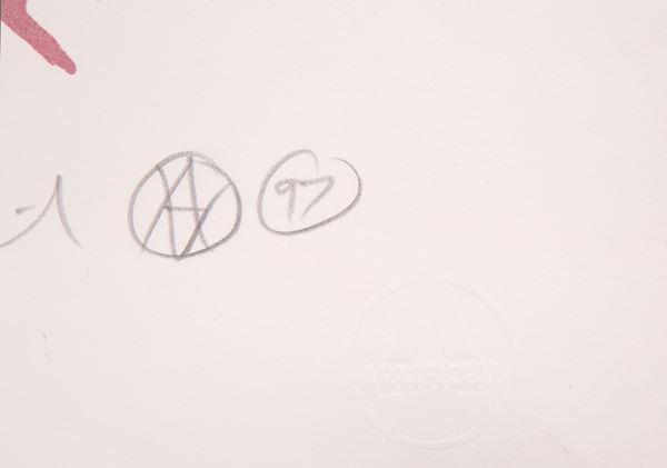 Lithograph on cardboard entitled "GOD SAVE THE QUEEN". Exemplary 110/200. Signed, dated '97 and with dry stamp of the publisher Artificial on the bottom right. With stamp on the back. With certificate of authenticity from Eddie Lock dated October 5, 2022.