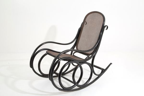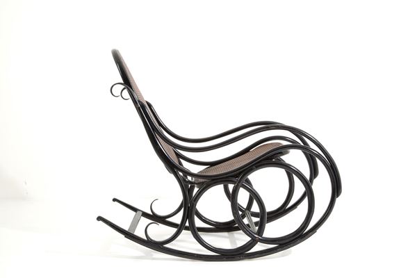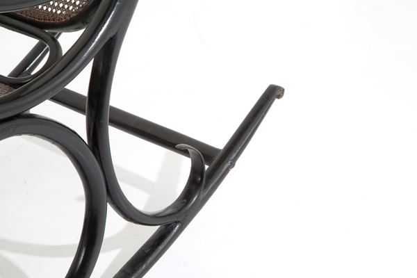 Rocking chair in black lacquered steam-bent wood. Austria. Early 20th century. Slight defects.