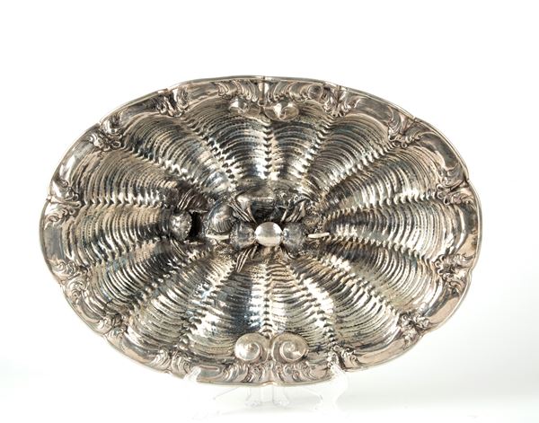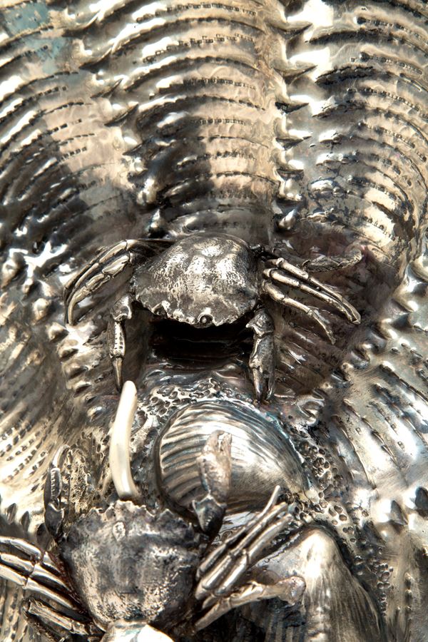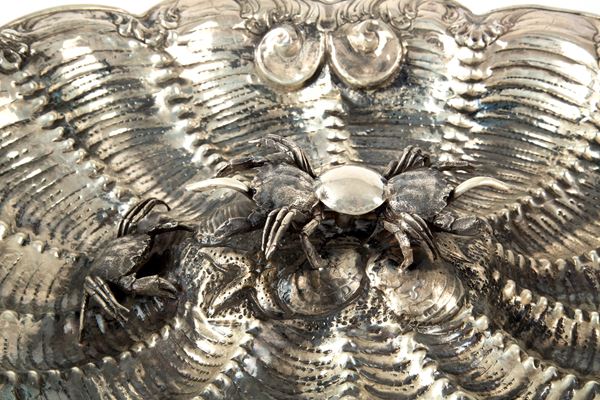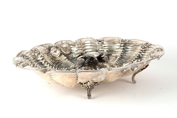 Fountain centerpiece in 800 silver decorated with central crabs. Silversmith LEAF. Punches on the bottom. 20th century.