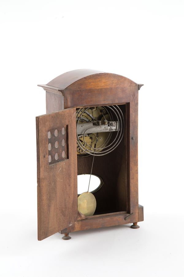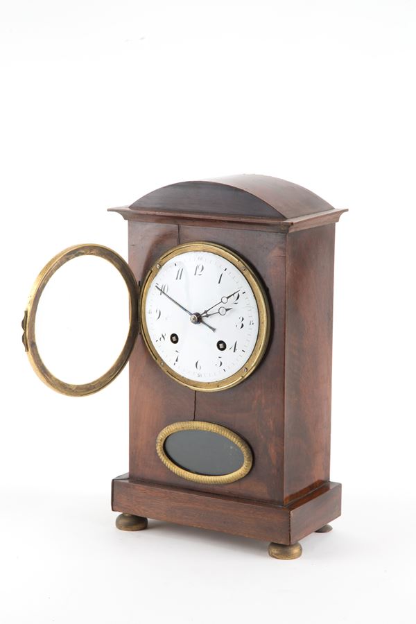 Mahogany wood table grandfather clock with dial with gilt bronze applications and Arabic numerals. England. 19th century. Slight defects.