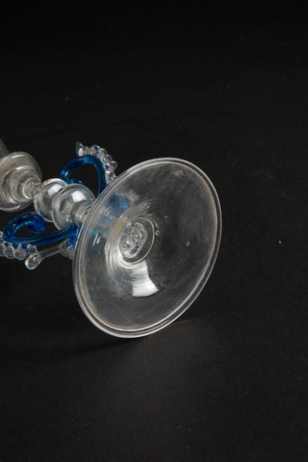 Venetian Tipetto goblet in blown glass with aquamarine relief decoration.