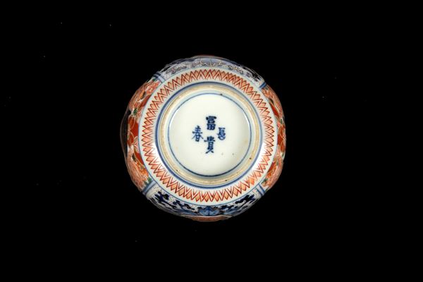 Painted Imari porcelain bowl. Marked on the bottom. Japan. 19th century.