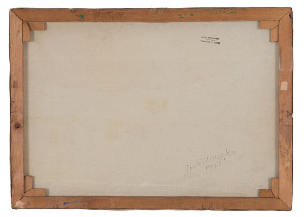 Oil painting on canvas entitled "PARIS". Signed, titled and with stamp of the Galleria La Barcaccia Roma, Montecatini Terme on the back. In frame. Minor defects.