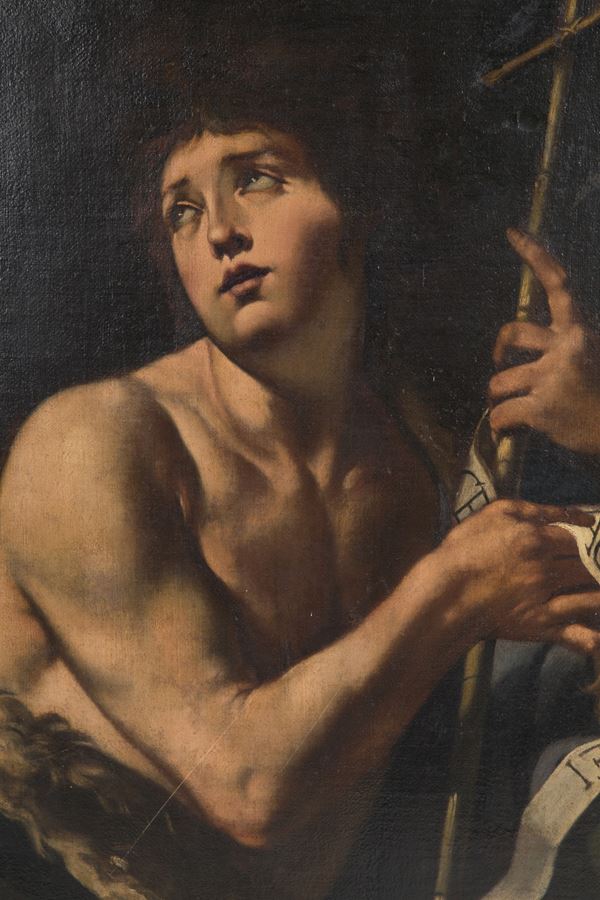 Oil painting on canvas depicting "SAINT JOHN THE BAPTIST". 17th century. In frame. Defects. Already relined.