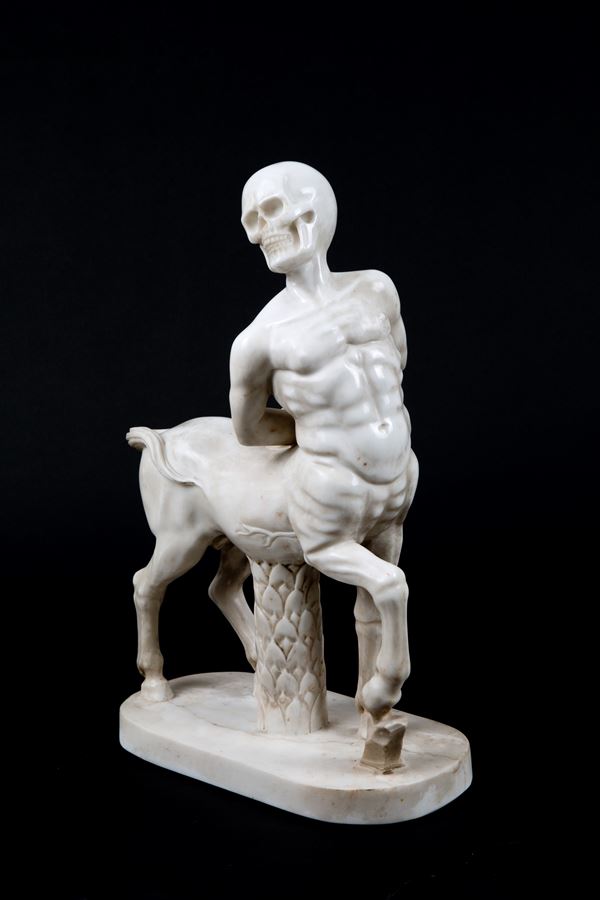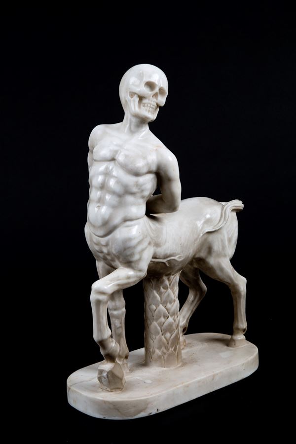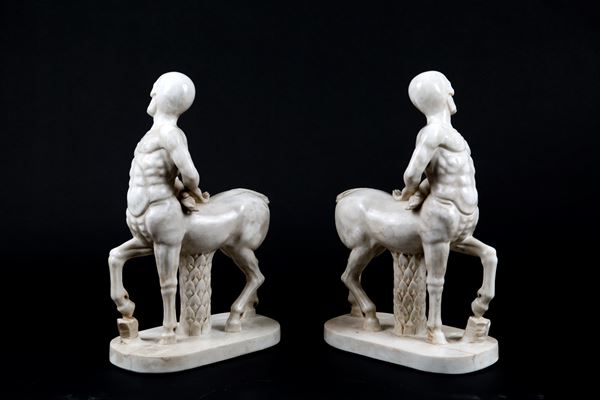 Pair of marble sculptures depicting “CENTAURS WITH SKULLS”. 20th century. Defects.