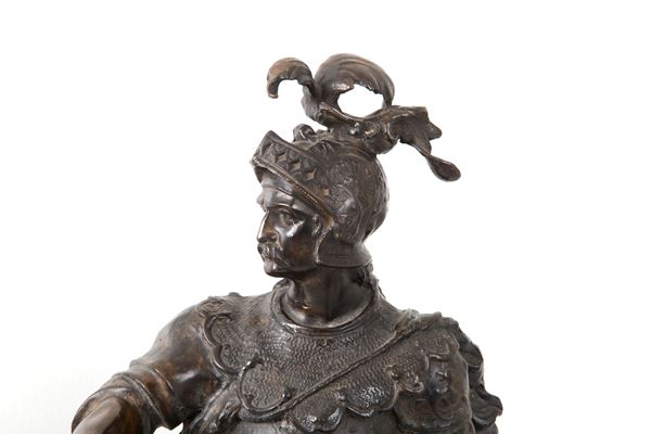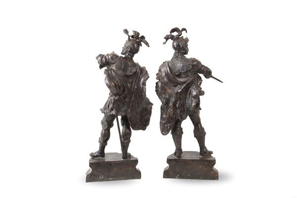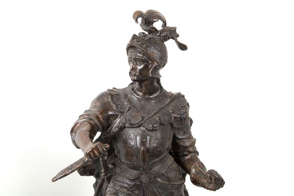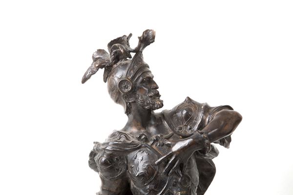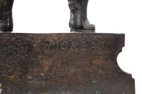 Pair of patinated metal sculptures depicting "WARRIERS". Signed MOREAU on the back of the bases.