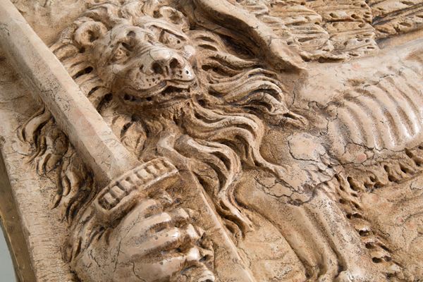 Plaque in red Garda marble depicting the "LION OF SAINT MARK". 19th century.