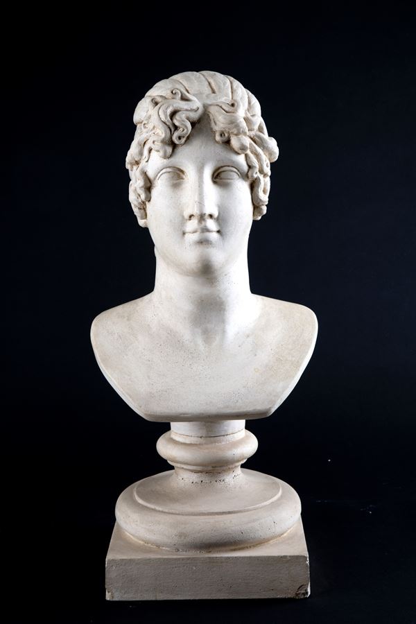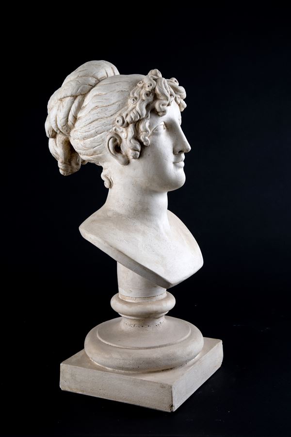 Plaster sculpture depicting "FEMALE BUST". Late 19th century.