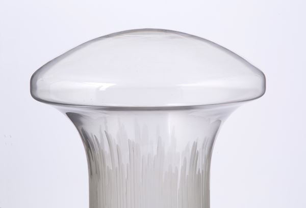 Boletus table lamp in Murano frosted glass with steel base. VENINI production. 60s-70s. Signs of wear over time.
