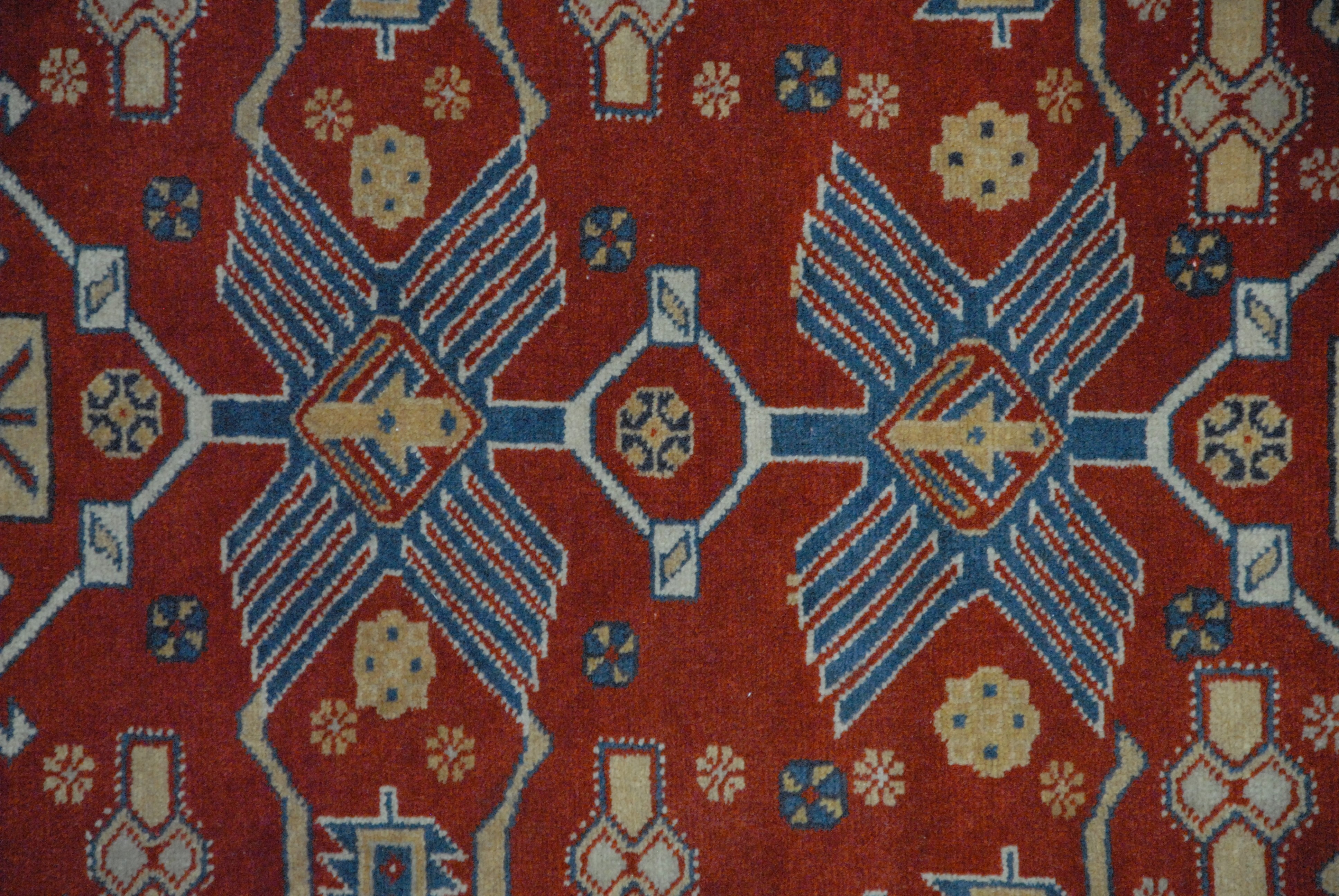 Azerbaijan wool carpet. Shirwan design. Caucasus. Signed in the header. Approximately 1970. In perfect state of conservation.