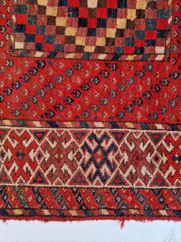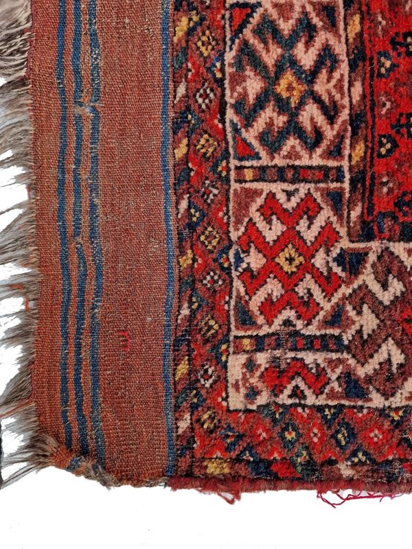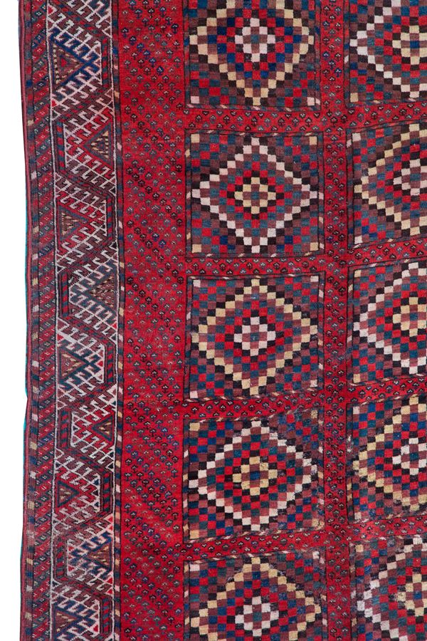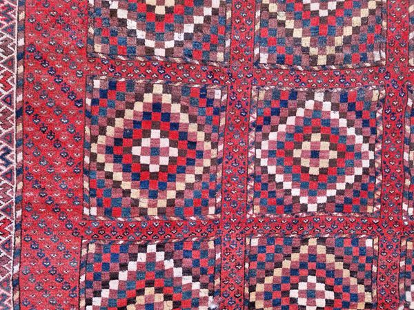 Bashir carpet. Turkmen. Late 19th century. Various moth-eaten spots and small, slightly worn areas, already washed with moth repellent and disinfected.