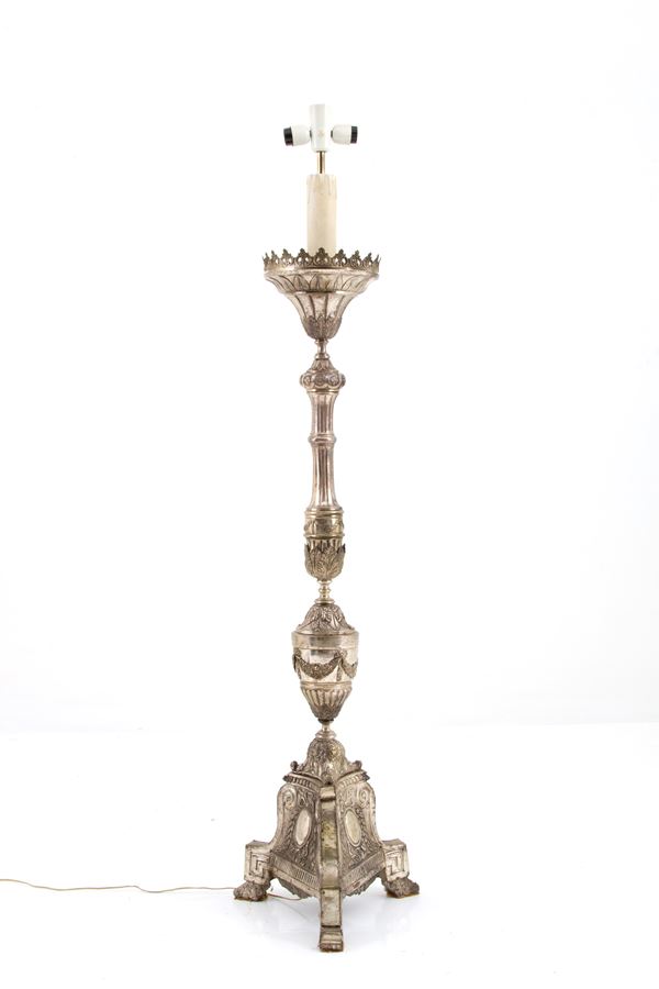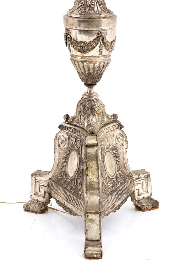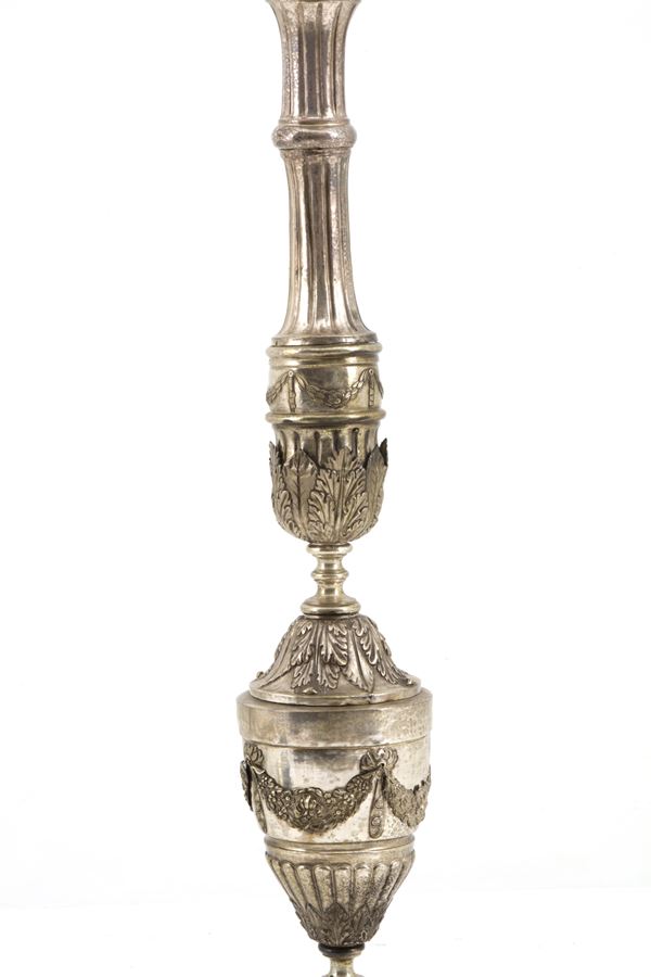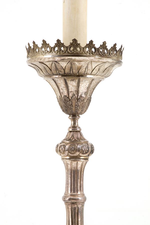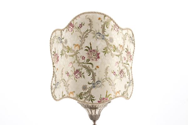 Candlestick transformed into a lamp in silver metal. Late 18th century.