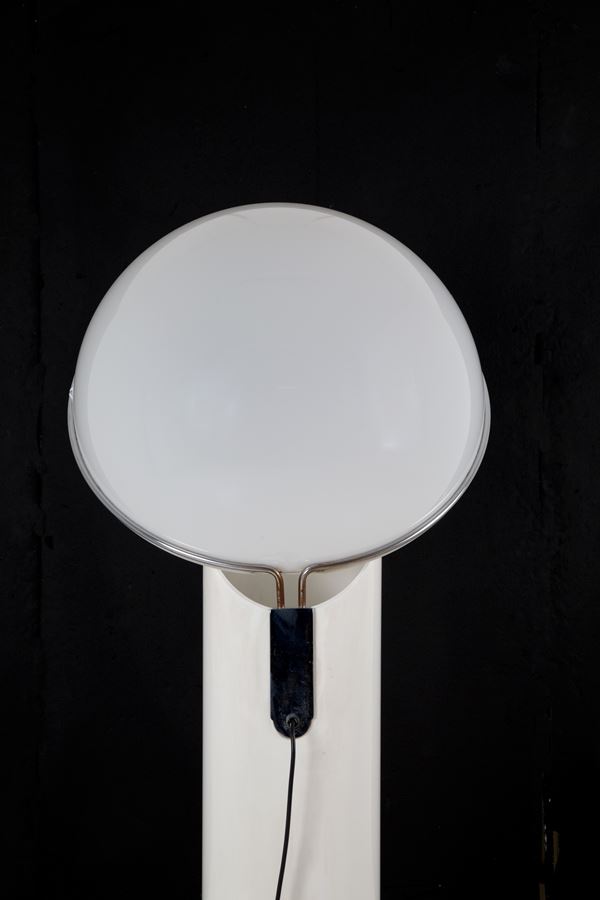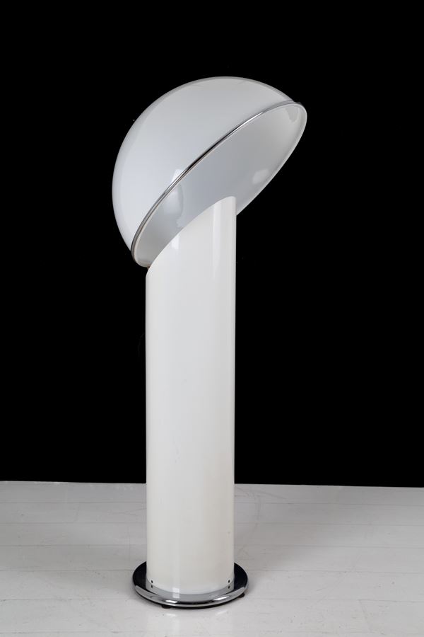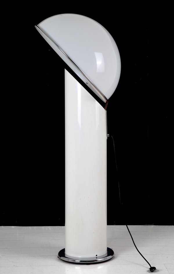 CIOT floor lamp with resin structure, opaline methacrylate lampshade, chromed metal base and finishes. LUMENFORM production. 70's. Signs of wear and tear over time.