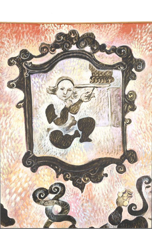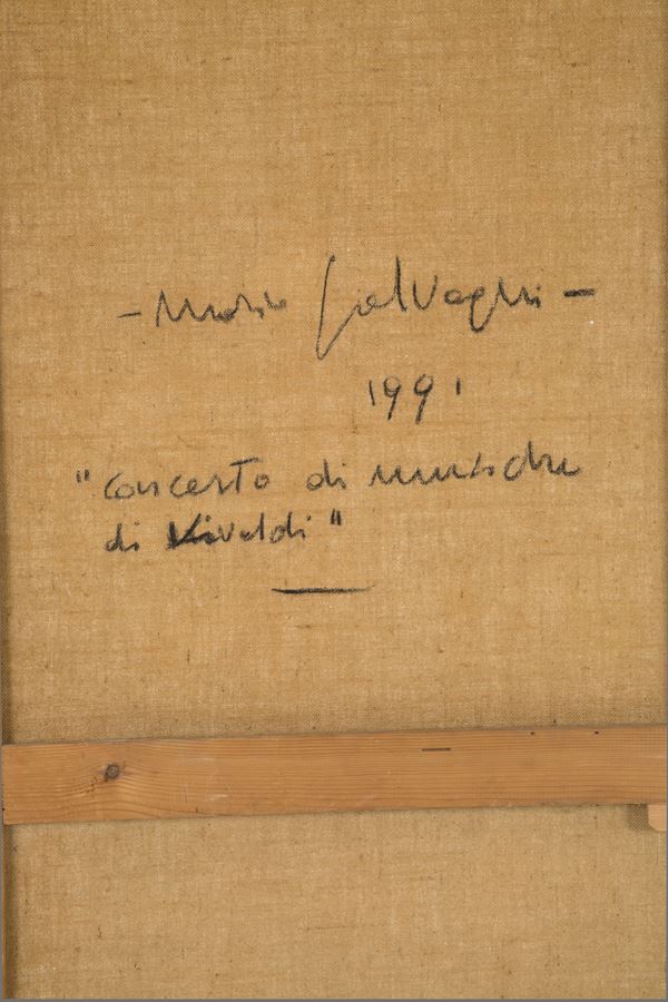 Oil painting on canvas entitled "VIVALDI MUSIC CONCERT". Signed, titled and dated 1991 on the back. In frame.