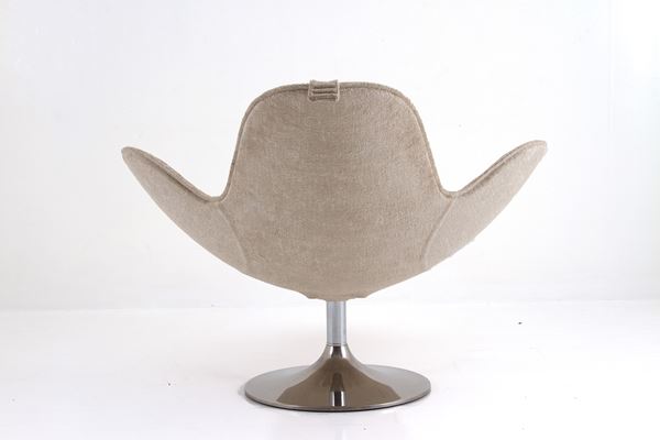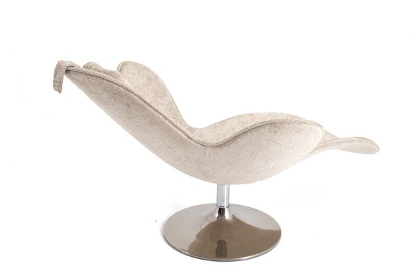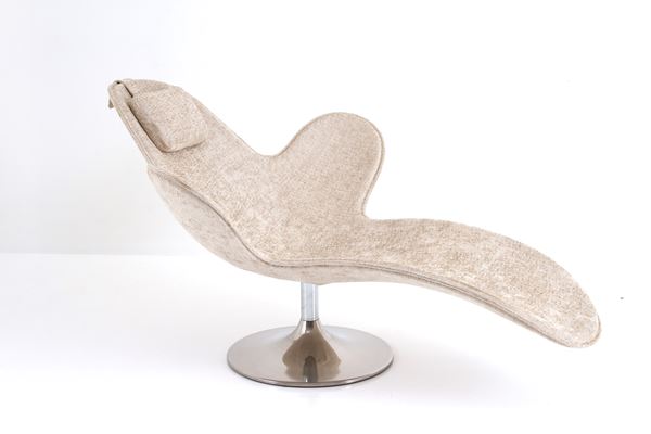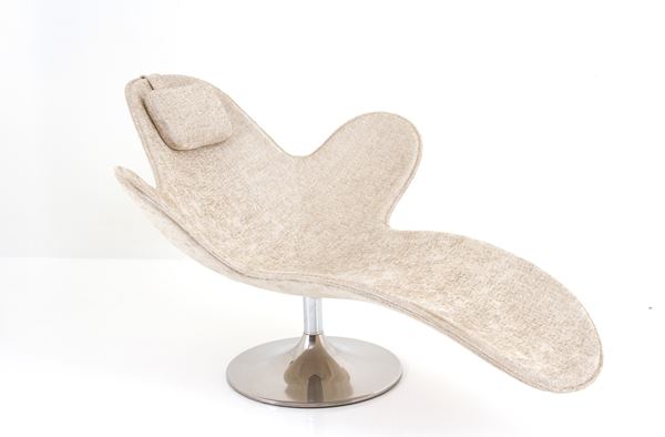 Lazy Mary chaise longue with fiberglass structure and upholstered covering in beige fabric with steel base. DISGUINCIO production. 90's. Defects and signs of wear and tear over time.