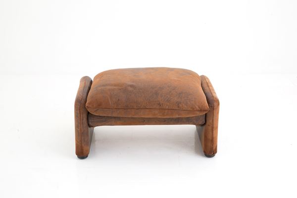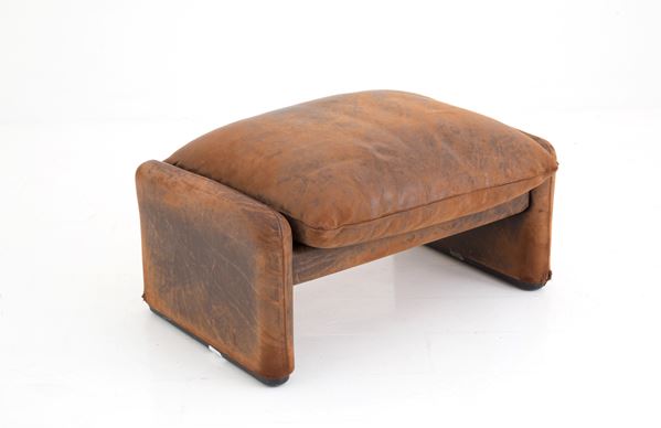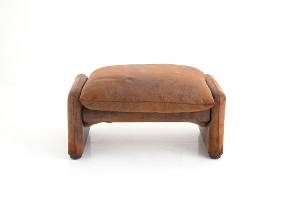 Maralunga pouf in brown leather. CASSINA production (Attr.). 70's. Defects.
