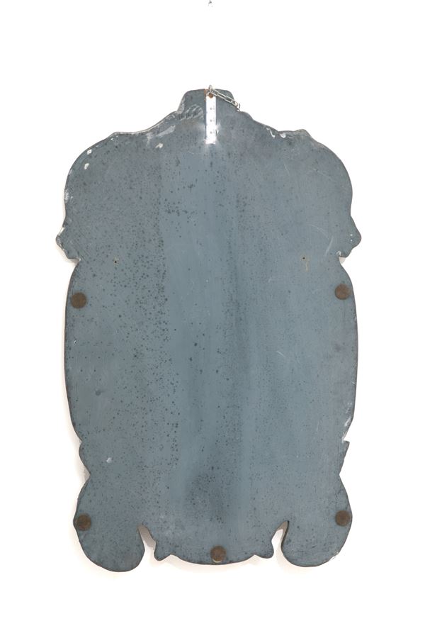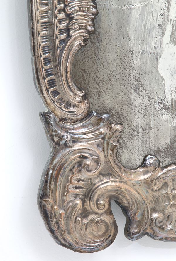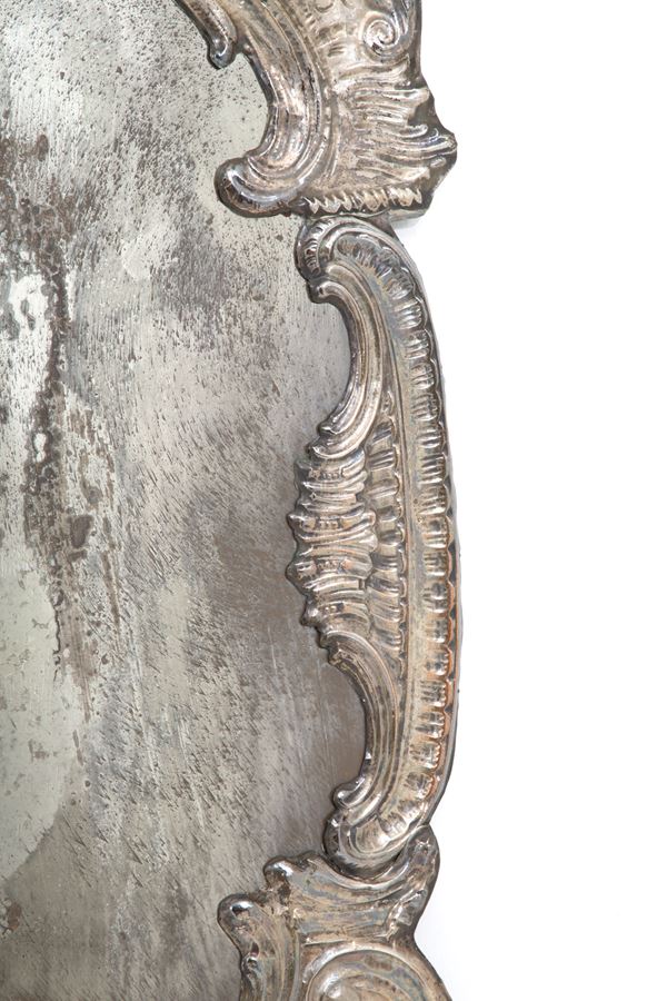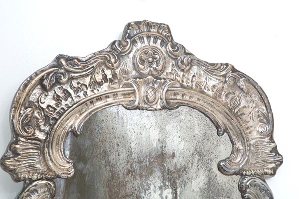 Wooden mirror with embossed and silvered copper frame. 19th century. Minor defects.
