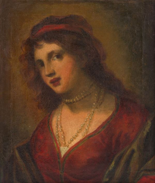Oil painting on canvas depicting "PORTRAIT OF A WOMAN". Late 18th-early 19th century. In frame. Defects and restorations. Already reframed.