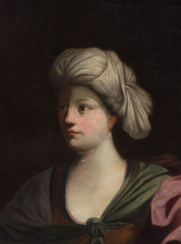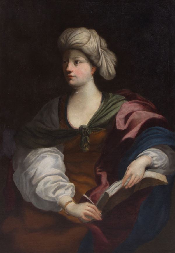Oil painting on canvas depicting "ROMAN SIBILLA". 17th century. In a lacquered and gilded frame. Already relined and reframed. Restorations.