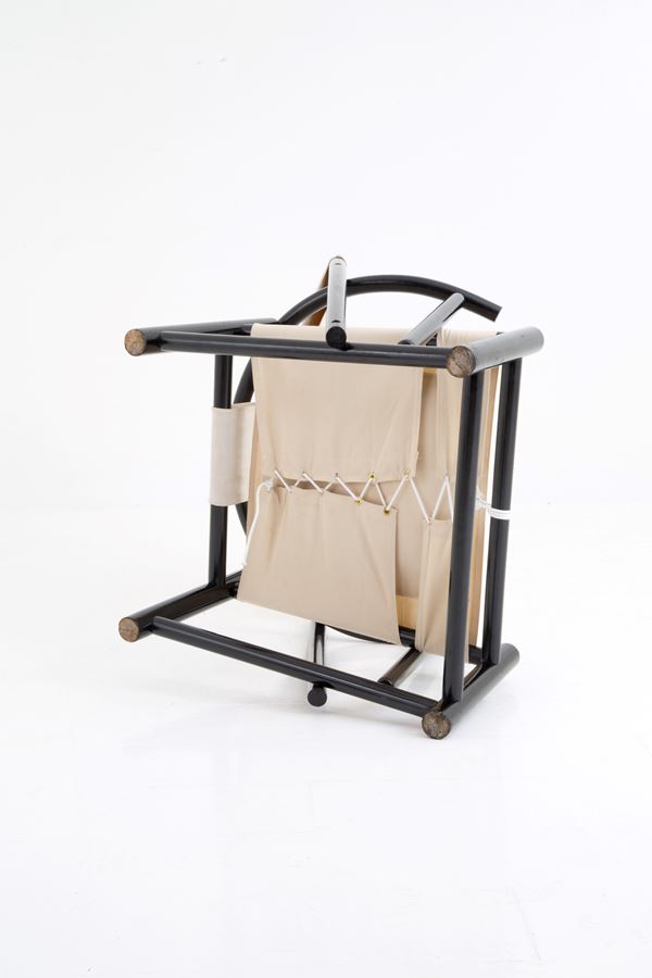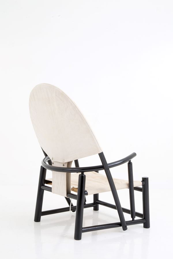 Hoop Chair armchair in black painted wood and beige fabric. Denmark. 60's.