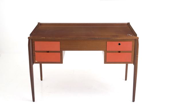 Teak desk with four drawers. DASSI production. 1950s. Defects.