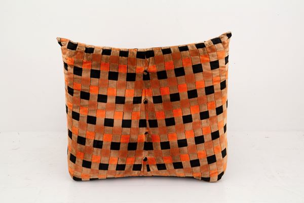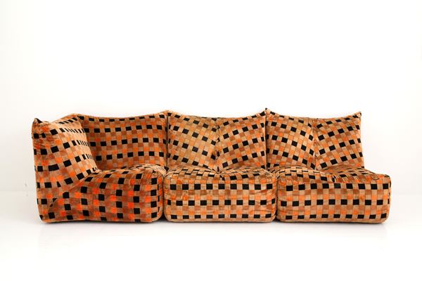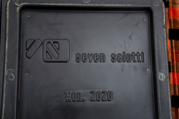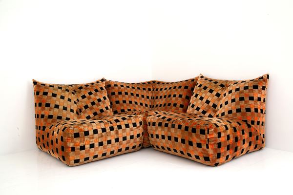 Three ZOZO model armchairs, one of which angolar, fully padded and covered in fabric. SEVEN SALOTTI production. With manufacturer's mark on the bottom. 1970s.
