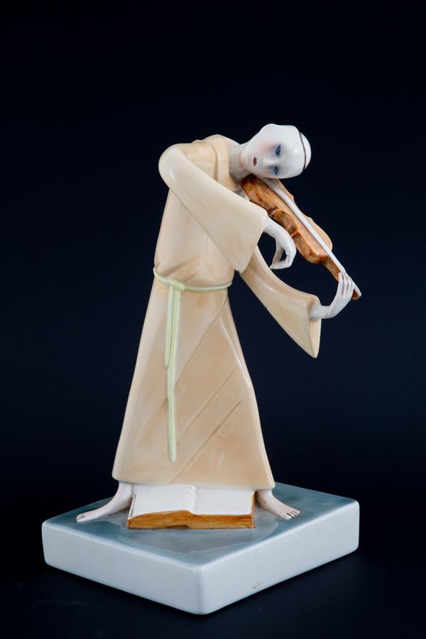 Ceramic sculpture "FRIAR VIOLINIST". LENCI
