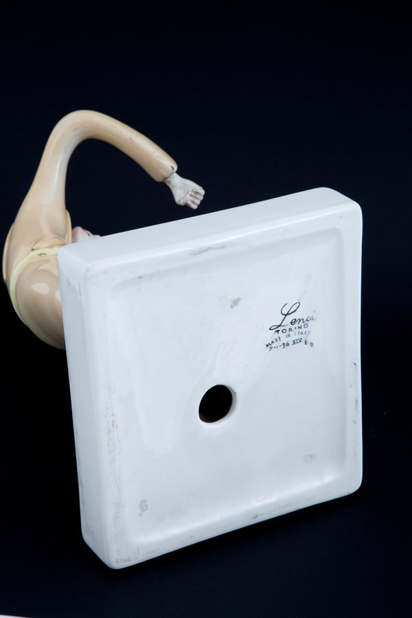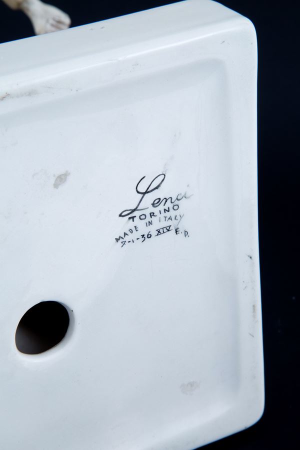 Polychrome ceramic sculpture depicting "FRIAR VIOLINIST". LENCI manufacture. 1936. Marked on the bottom. Missing the violin scroll.