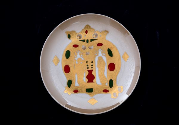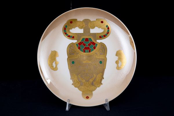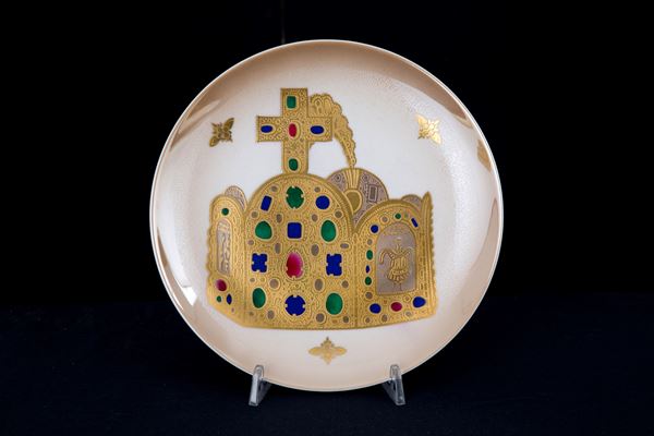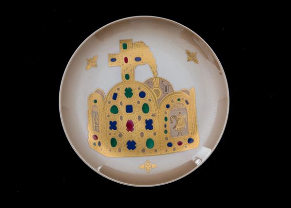 Four collectible ornamental plates in porcelain etched with etching and decorated with enamels, pure gold and platinum. 'Gioiello' series. Production MORBELLI FINE ARTS. Marked on the bottom. 1990s. In case and with original certificates.