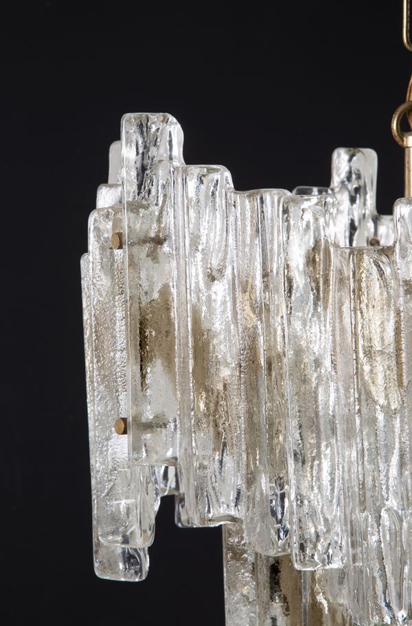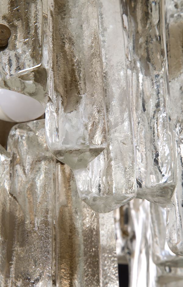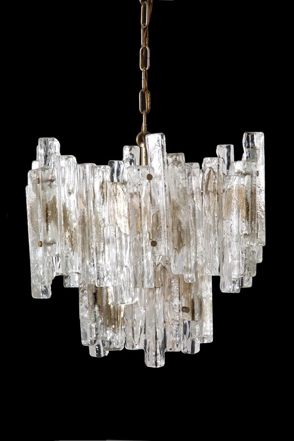 Murano ice glass chandelier. Manufactured by KALMAR FRANKEN KG. 1970s.