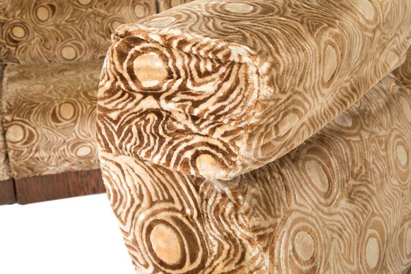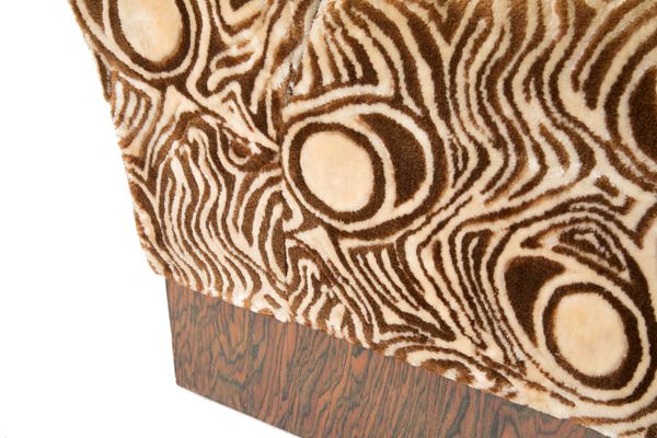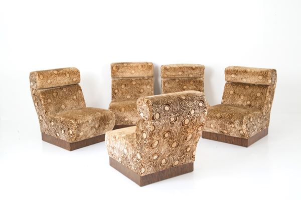 Modular sofa with five elements in velvet and wood. Italian manufacture. 1970s. Defects.