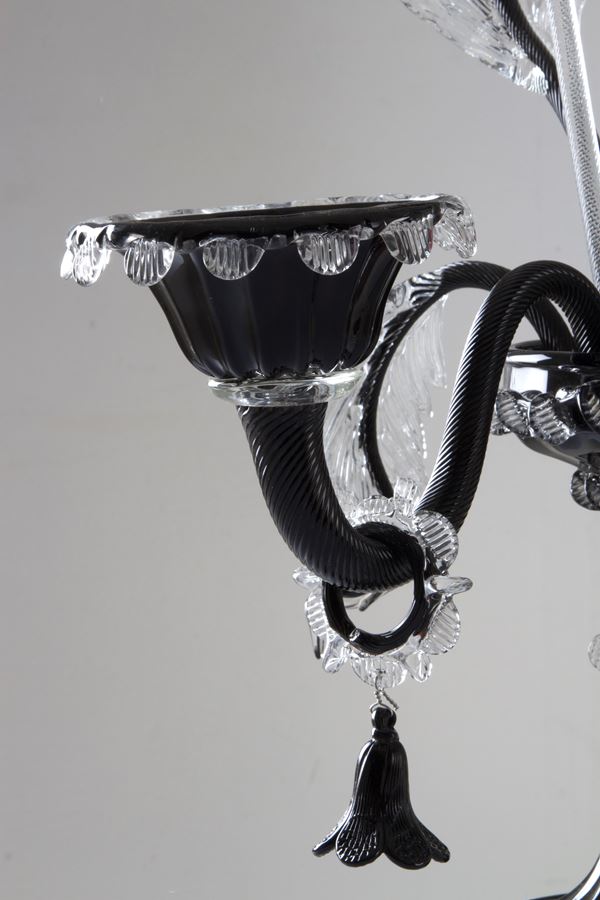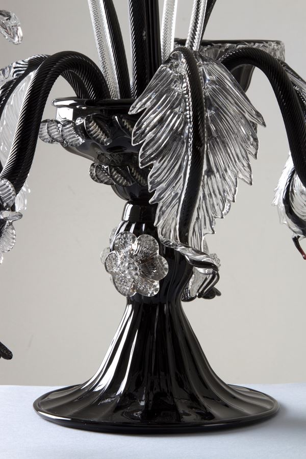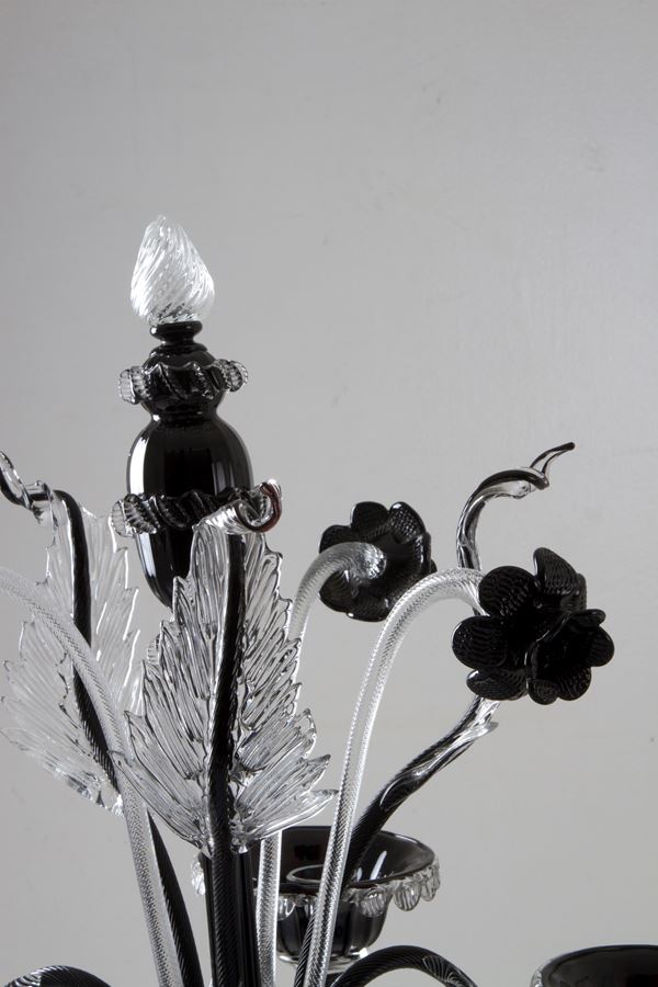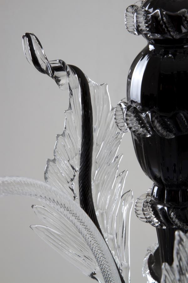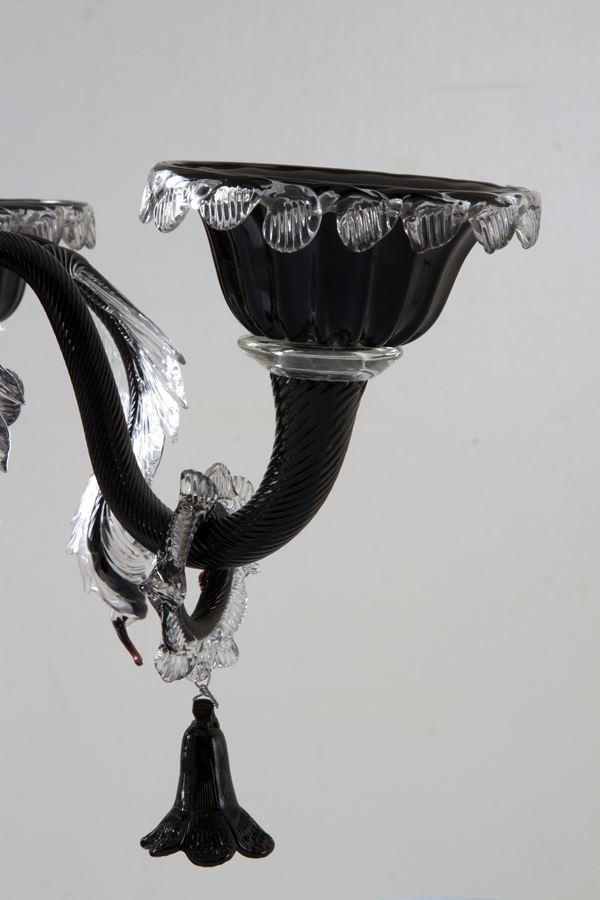 Clear and black Murano glass candelabra. 20th century.