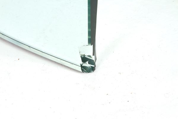 Oval glass table with half-moon legs. 1990s. Defects.