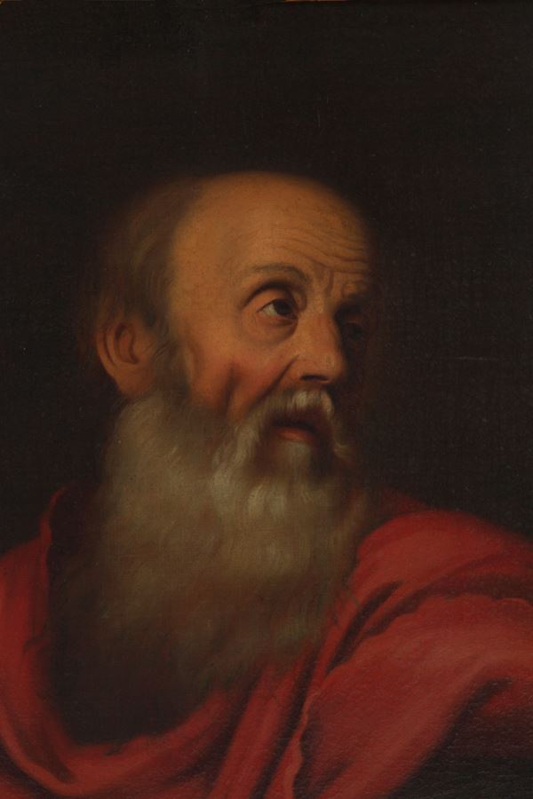 Oil painting on canvas depicting "EVANGELIST". XVII century. In a gilded frame. Already relined and re-stretched. Minor restorations.