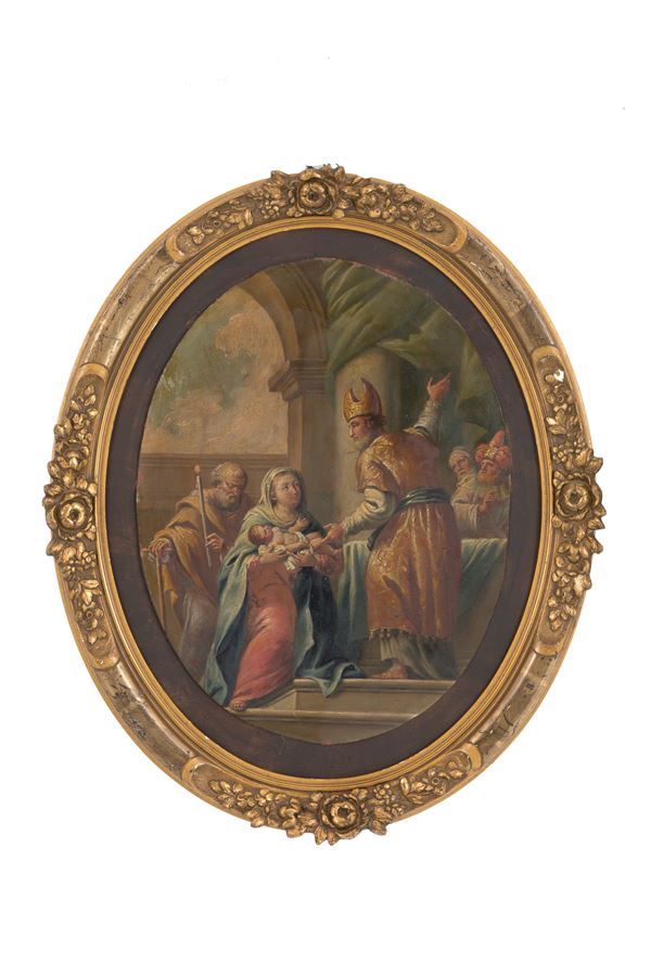 Pair of oil on copper paintings depicting "THE CIRCUMCISION" and "THE FLAGELLATION". Late 17th-early 18th century. In gilded frames. Minor restorations.