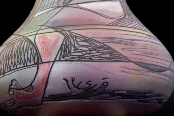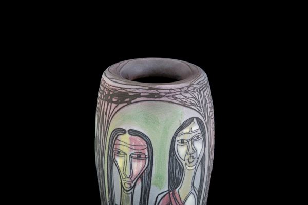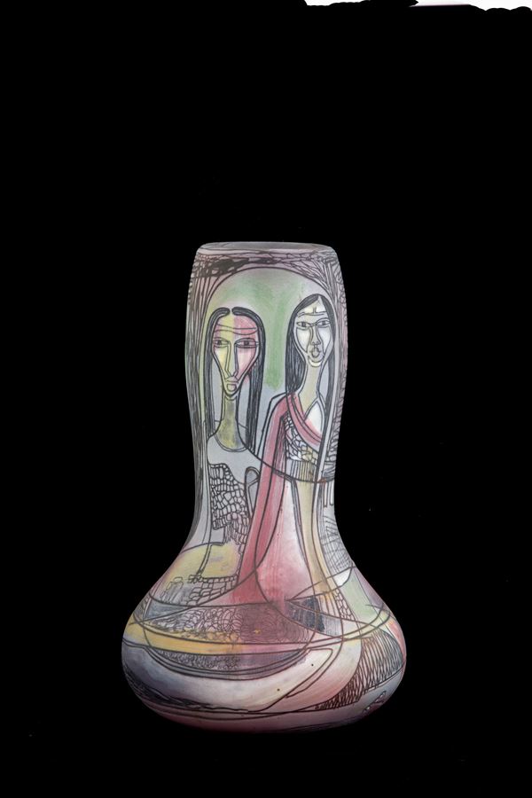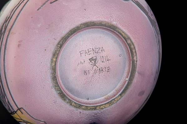 Polychrome ceramic vase decorated with female figures. Marked ISTITUTO D'ARTE FAENZA and numbered 1214 on the bottom.