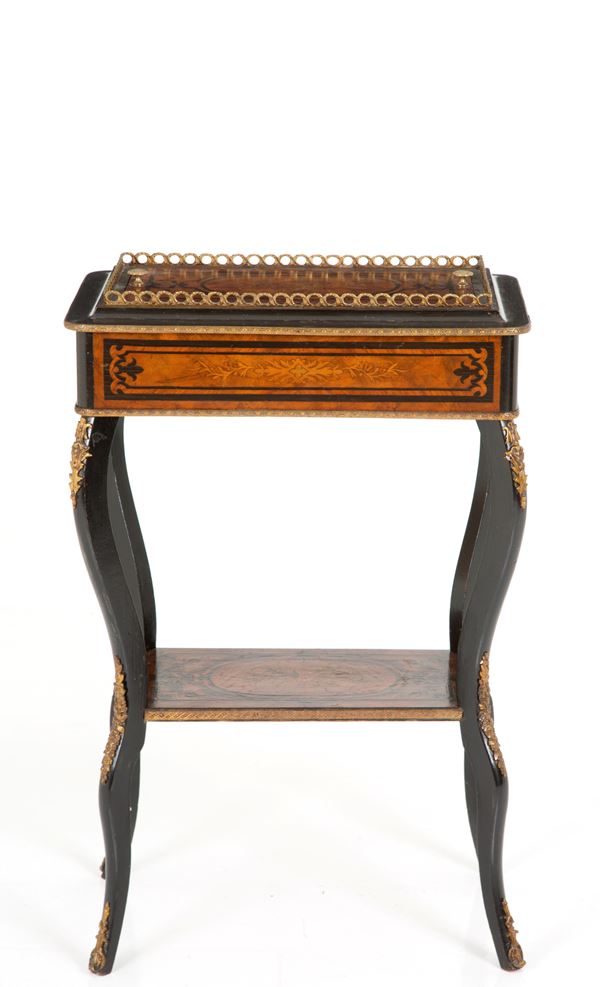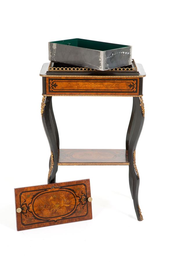 Flowerpot veneered in various woods with flower and bird motifs with gilded bronze fittings. France. 19th century. Defects.