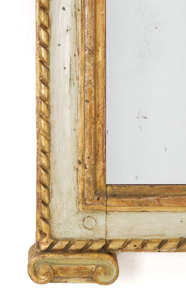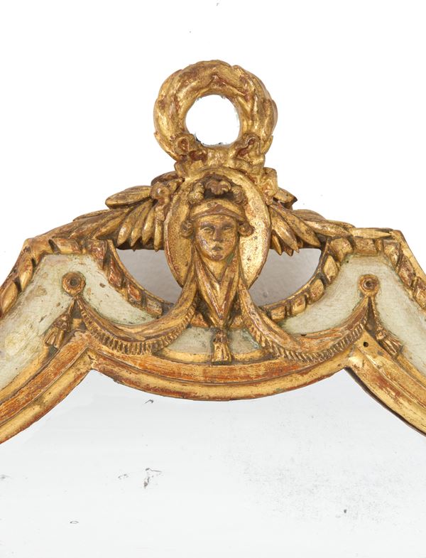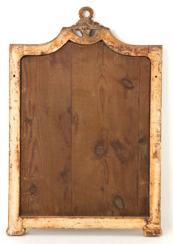 Shaped mirror in lacquered and gilded wood. 19th century. Minor defects.