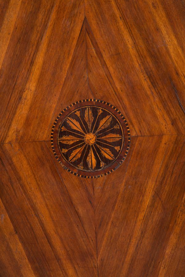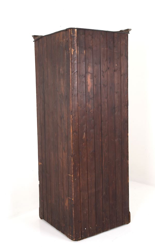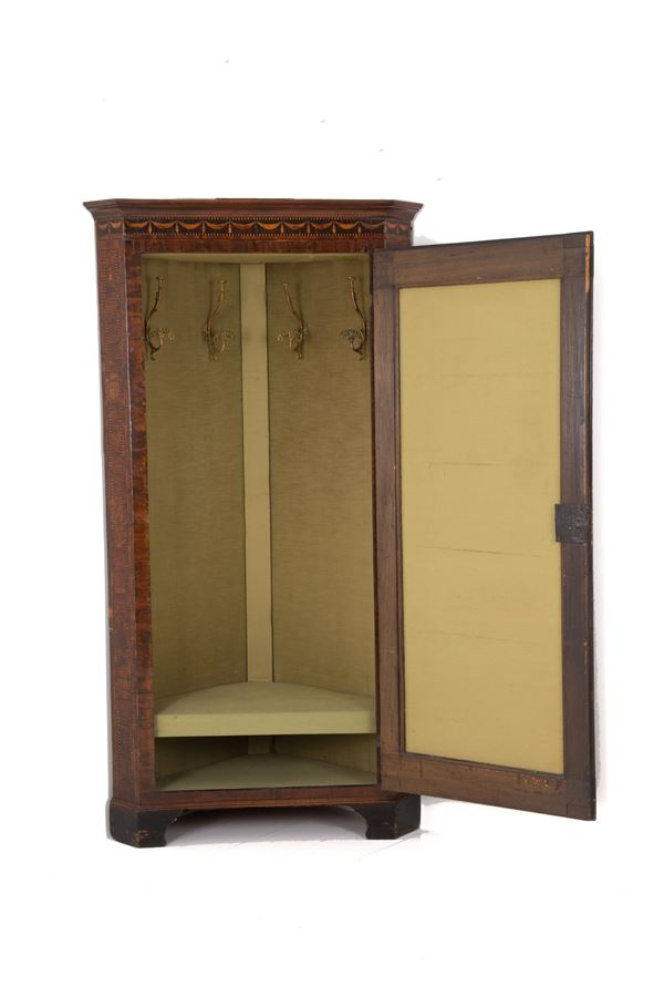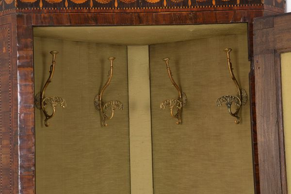 Large corner cabinet veneered and inlaid with various woods. Lombardy. 19th century. Defects and shortcomings.