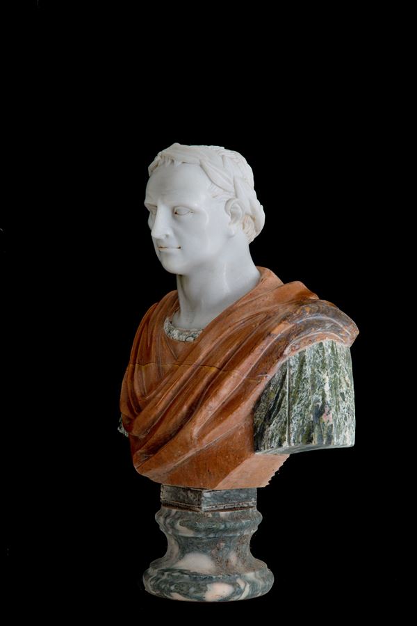Polychrome marble sculpture depicting "EMPEROR". 20th century. Slight defects.
