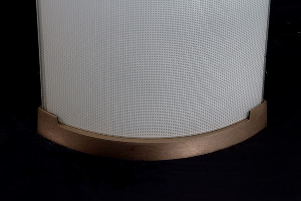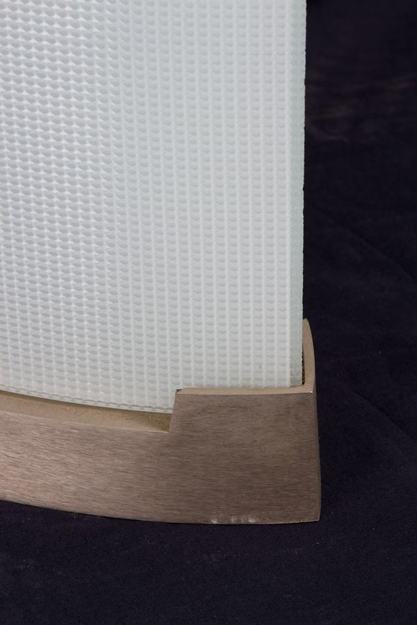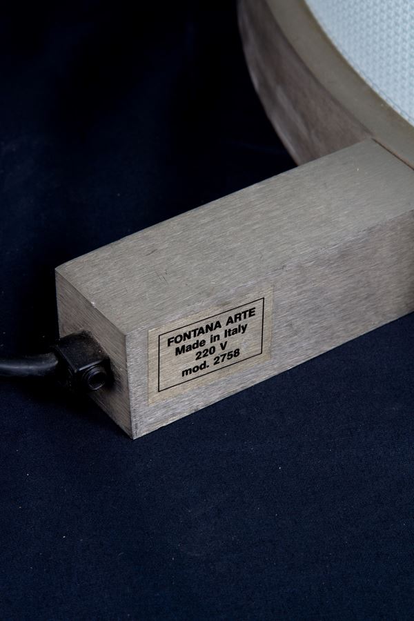 Floor lamp mod. 2758 Pirellone in curved molded glass and satin nickel-plated brass. FONTANA ARTE production. 1960s. With manufacturer's label on the base. Signs of wear and tear over time.