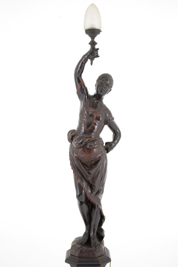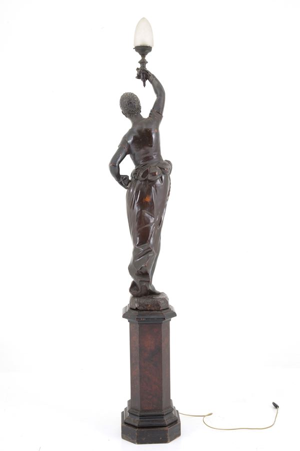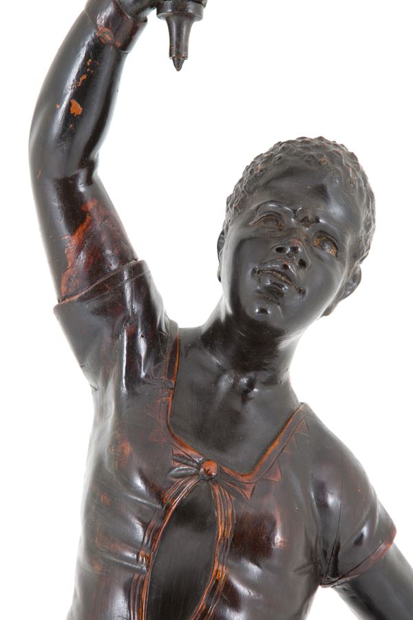 Wooden sculpture depicting "MORO LAMP HOLDER". Early 20th century.