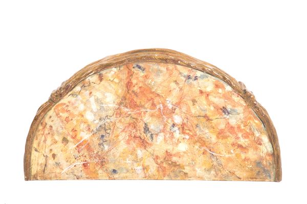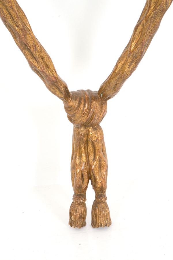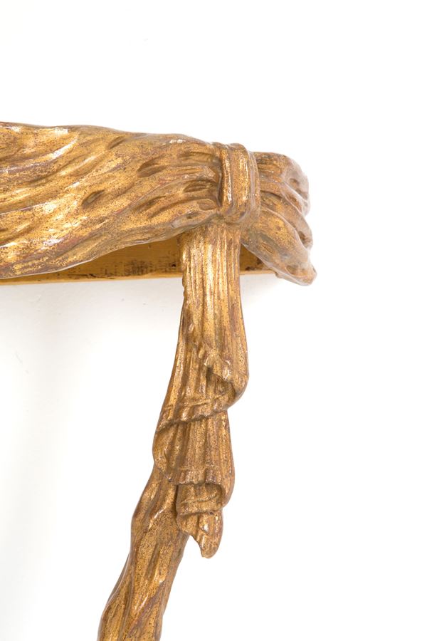 Small carved and gilded wooden hanging console with faux marble top. 19th century. Minor defects.